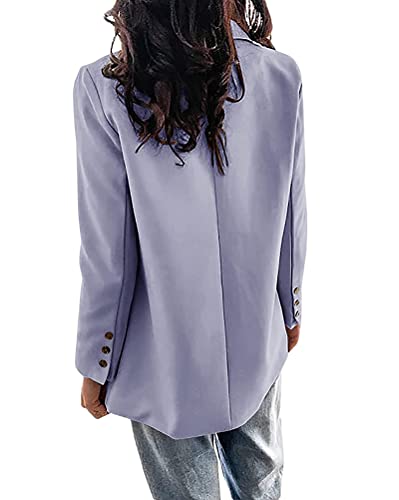 Minetom Donna Blazer Elegante Tinta Unita Ufficio Business Festa Manica Lunga Cappotto Giacca con Bottoni C Viola S