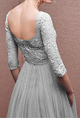 Lungo Tulle damigella d'onore maxi maniche a 3/4, girocollo femminile.