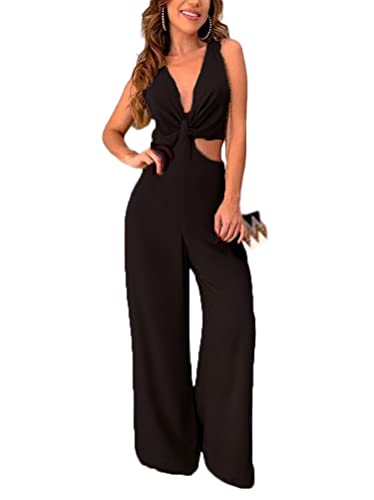 Minetom Donna Elegante Casuale Estivo Scollo a V Senza Maniche Tuta Corta Pagliaccetto Pantaloncini Corti Jumpsuit Playsuit Clubwear Nero IT 40