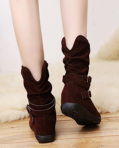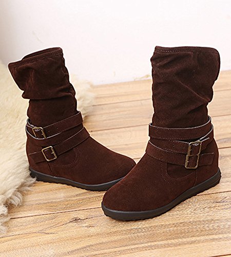Minetom Donna Eleganti Camoscio Stivali Autunno Invernali Peluche Fibbia Stivaletti Di Caviglia Moda Boots Scarpe Tacchi Bassi Marrone EU 37