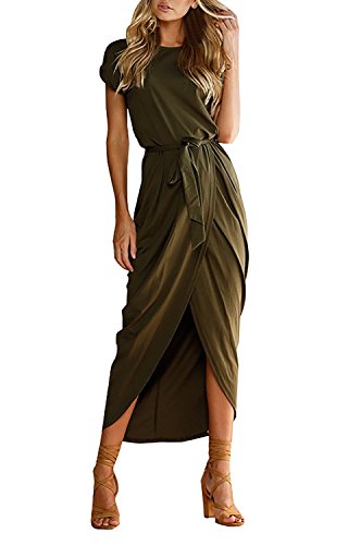 Minetom Donna Estivo Asimmetrico Vestiti Lungo Rotondo Collo Cinghie della Vita Vestito da Spiaggia Abito Maxi Dress da Matrimonio Banchetto Sera Army Green IT 48