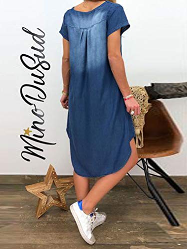 Minetom Donna Estivo Manica Corta Abito Vestito Camicia Lunga Sciolto Oversize Scollo a V Vestiti di Jeans Denim Grande Taglia C Blu 50
