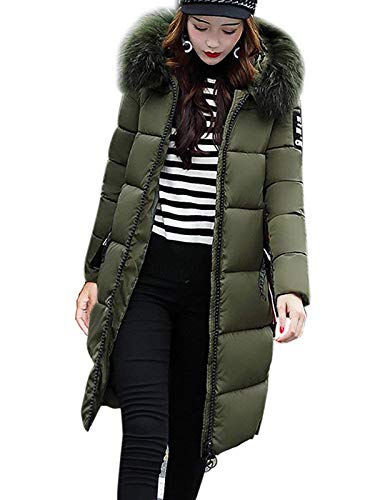 Minetom Donna Invernali Giacca Lungo Caldo Cappotto con Cappuccio Collo di Peluche Casual Piumino Parka Trench Coat Outwear Antivento Verde Militare 44