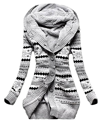 Minetom Donna Inverno Vello A Maglia Pulsante Maglioni Outwear Cardigan Tunica Felpe con Cappuccio Maglieria Cappotti (IT 42, Grigio)