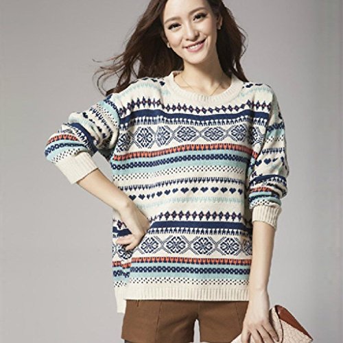 Minetom Donna Maglia Maglione Pullover Girocollo Jumper Manicotto del Blocco Sweatshirt (Beige)
