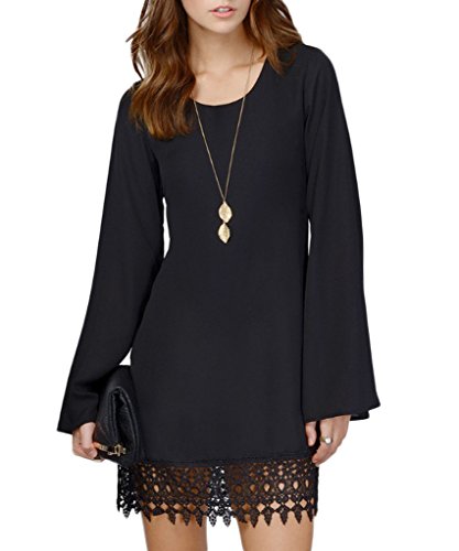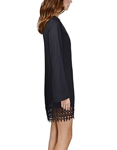 Minetom Donna Manica Lunga Chiffon Pizzo Sciolto Mini Vestito Cocktail Party Club Dress Nero IT 42