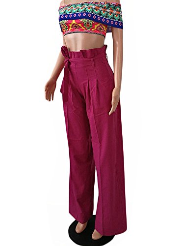Minetom Donna Moda Casuali Alta Vita Gamba Larga Pantaloni Con Cintura Elegante Sciolto Palazzo Comodi Svasato Larghi Pantalone Rosso EU M