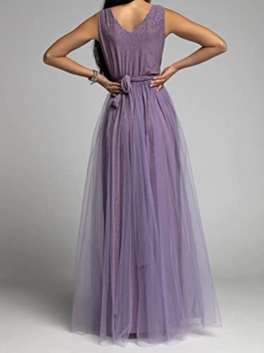 Minetom Donne Lunga Vestito da Cocktail Sera Elegante Linea ad A Scollo a V Senza Maniche Maxi Abito da Cerimonia Damigella A Viola L