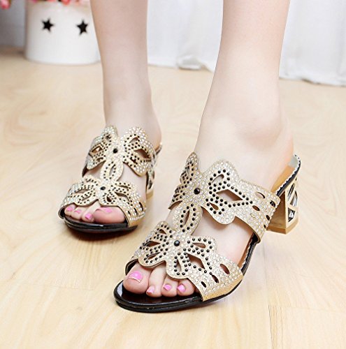 Minetom Donne Moda Elegante Estate Pantofole Finto Strass Fiore Farfalla Sandali Peep Toe Pantofol