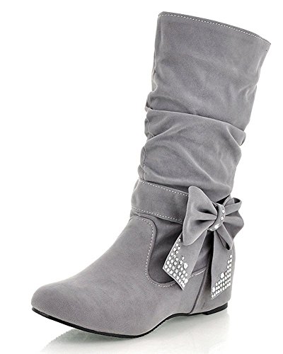 Minetom Donne Ragazze Inverno Moda Caldo Bowknot Stivali con Strass metà Stivali La Neve Stivali Grigio EU 39