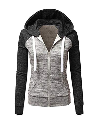 Minetom Felpa con Cappuccio Donna Felpa con Zip Cappuccio Manica Lunga Felpa Cardigan Felpe con Zip Autunno Invernali Felpe Splicing Cardigan C Grigio L