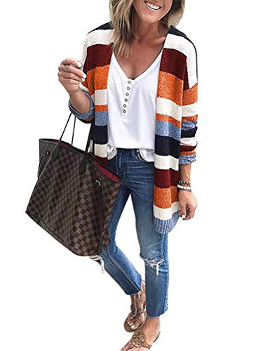 Minetom Giacca da Donna, Donne Autunno Inverno Manica Lunga Sciolto Casual Maglione A Strisce Cardigan Cappotto Bianca IT 42
