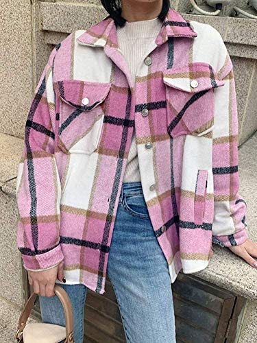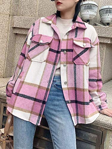 Minetom Giacca A Quadri Donna Primavera Autunno Giacche Lungo Manica Taglie Forti Giacca Outwear Cappotto Cardigan Moda Quadri E Rosa Medium