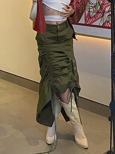 Minetom Gonna Donna Cargo Gonna Lunga Estate Vintage A-Linea Y2K E Girl Retro Maxi Gonne Lunga Rockabilly Skirt Harajuku Streetwear H Verde L