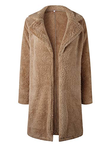 Minetom Invernale Cappotto Lungo Donna Parka di Peluche Tinta Unita Caldo Giacca Lunga con Revers Moda Maniche Lunghe Davanti Aperto Outwear Kamel IT 50