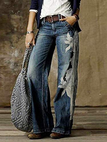 Minetom Jeans Donna Boyfriend Baggy Pantaloni Larghi Pantalone a Gamba Larga Sciolto Straight Stampa Denim Trousers Stile 05 XL