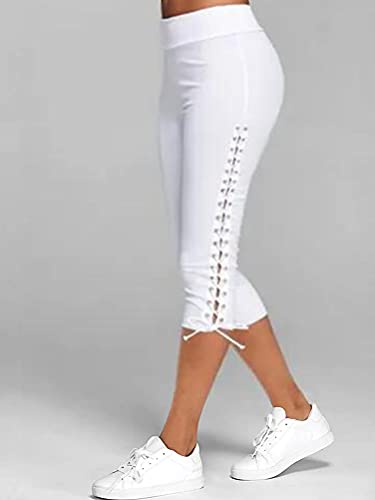 Minetom Leggings 3/4 Pantaloni Capri Donna Estivi Yoga Fitness Palestra Pantaloni Corti di Vita Alta Sport Jogging Ritaglio della Cinghia Laterale Pantaloncini A Bianco XS