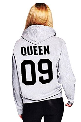 Minetom Lovers Uomo e Donna Felpa Con Cappuccio King Queen Corona Stampa Manica Lunga Cappotto Giacca Sweatshirt Hoodies Pullover Grigio IT 40(Donna)