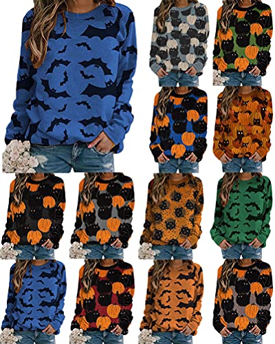 Design: magliette donna manica lunga t-shirt girocollo casuale halloween stampata maglia basic camicia felpa top pullover bluse sweatshirt donna abbigliamento