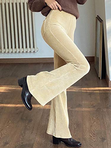 Minetom Pantaloni Donna Jeans A Vita Alta Dritti Pantaloni Vintage Velluto A Coste Pantaloni A Zampa Denim Pants H Cachi S