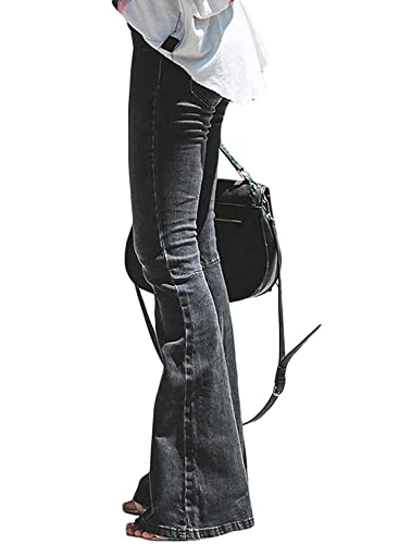 Minetom Pantaloni Donna Zampa d'Elefante Casual Denim Bootcut Larghi Flare Pants Elasticizzati Vita Alta Jeans Pantaloni A1 Nero M