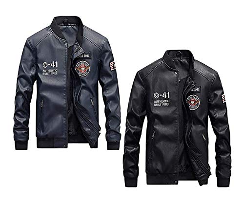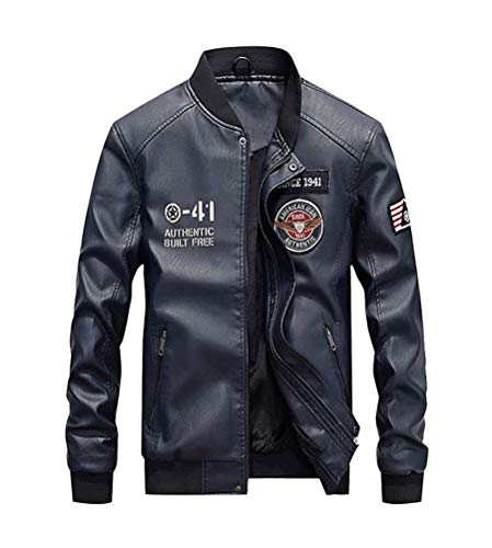 Minetom Uomo/Signori/Ragazzi PU Pelle College Baseball Jacket Felpa Motociclista Giacca Giubbotto C Marina XL
