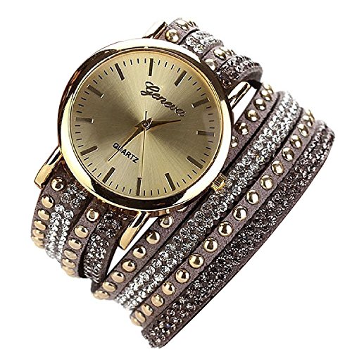 Minetom Retro Orologio a Quarzo Bracciale in Pelle Rivetto Da Donna Bracciale Intrecciato Orologio da Polso Wrist Watch