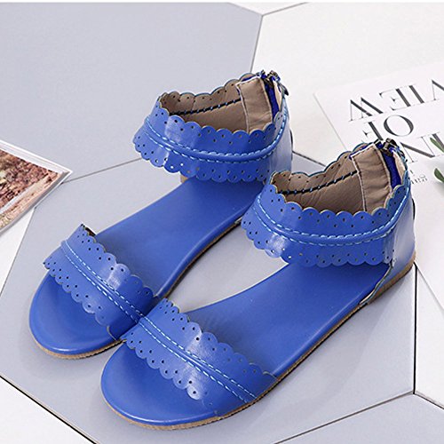 Minetom Sandali Donna, Cinghie Scarpe da Spiaggia, Le Donne Sandali A Fondo Piatto Romano, Aperto Caviglia Cinghie Piatte Piattaforma Zeppe Scarpe Blu EU 39