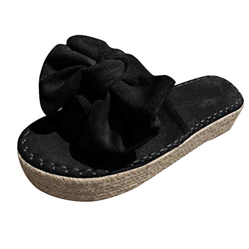 Minetom Sandali Estivi Donna Zeppa Plateau Estivi Casuale Sandali Piattaforma Con Fiocco Scarpe Platform Punta Aperta Spiaggia Ciabatte A Nero 36 EU