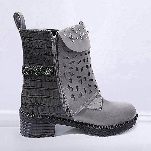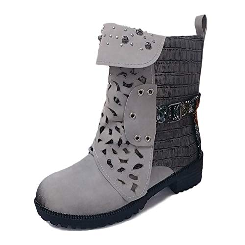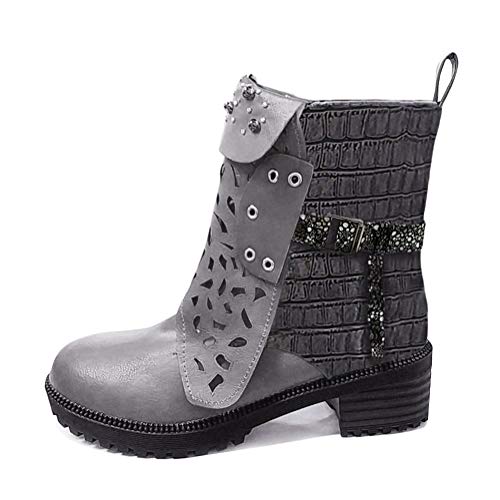 Minetom Scarpe da Moda Stivaletti - Scarponcini Biker Cavalier Classic Donna Intrecciato Grandi Bottoni Tacco A Blocco 3 Cm - Soletta Foderato di Pelliccia Grigio 40 EU