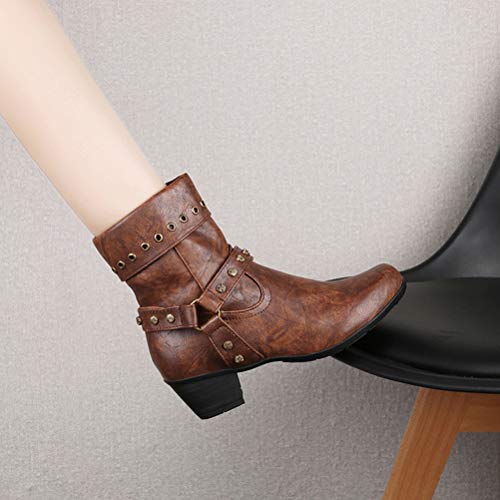 Minetom Stivaletti Donna Chelsea Stivali Basso Blocco Tacco Corti Stivali Autunno Inverno retrò Stivali Cerniera Scarpe Donna Stivaletti B Marrone 39 EU