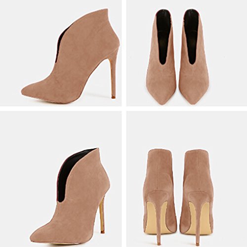Minetom Stivaletti Donna con Tacco Inverno Stivali Caviglia Eleganti Camoscio Scarpe Invernali Autunno Boots Platform Zip High Heels Cachi EU 36