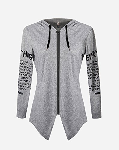 Minetom Sweatshirt Maniche Lunghe con Cappuccio Donna Cerniera Hoody Giacca Bordo Irregolare Felpe Grigio IT 44