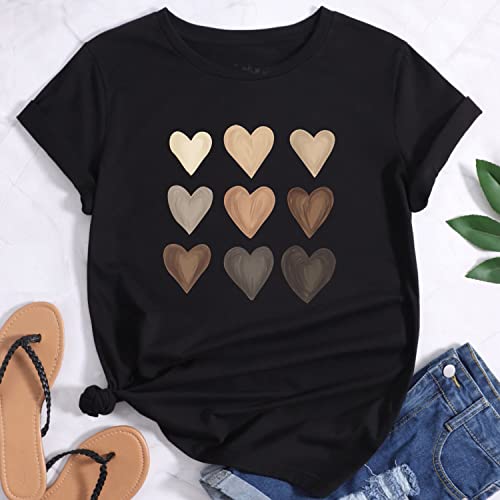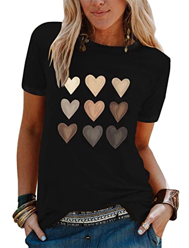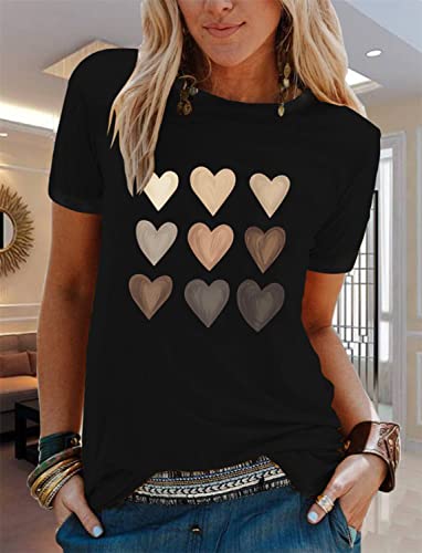 Minetom T-Shirt Donna Maniche Corte Girocollo Camicetta Tops Stampa a Cuore Casual Loose Bluse Maglietta Donna Estiva A Nero XXL