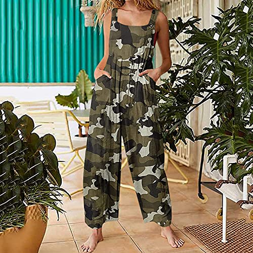 Minetom Tuta Donna Estiva Salopette Donna Elegante Tuta Intera Jumpsuit Casual Senza Maniche Cotone e Lino Overall Pantaloni Larghi con Tasche per Spiaggia Vacanza B Verde M