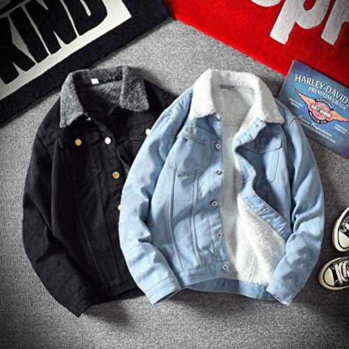 Minetom Uomo Giacca In Jeans Giacchetto Denim Uomo Denim Jacket Giacchetta Giacca Di Jeans Artificiale Pile Fodera Sconvolto Giacca C Nero XXL