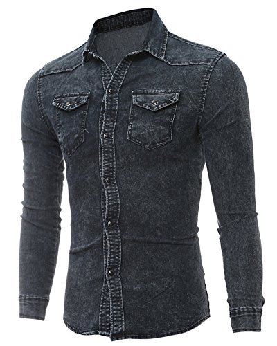 Minetom Uomo T Shirt Tops Cime Moda Camicia in Jeans Maglietta Informale Camicia Jeans Slim Fit Manica Lunga Primavera Autunno Grigio Scuro EU S