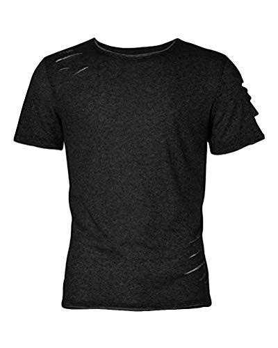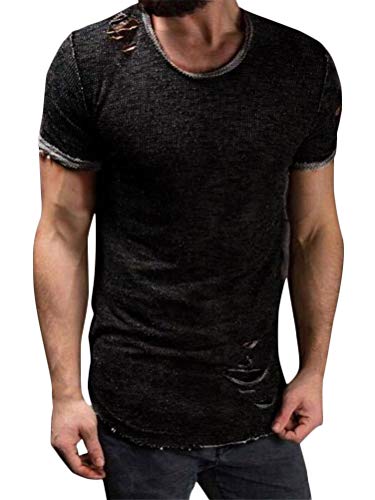Minetom Uomo T-Shirt Estate Manica Corta Girocollo Casual Comodo Moda Magliette Tinta Unita Buco Tops vestibilità Slim Nero EU S