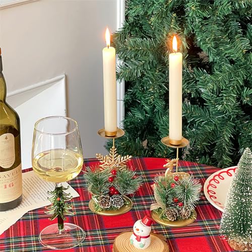 【Bellissima decorazione da tavola】Il portacandela natalizio è molto facile da usare, devi solo installare la candela e la candela emetterà una luce calda e bella, rendendo la tua casa più bella e calda. Le candele a colonna portacandele possono decorare qualsiasi scrivania e creare una romantica e calda luce di candela per te la notte di Natale.