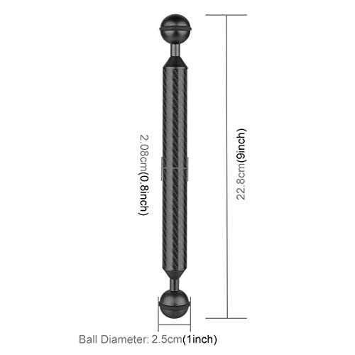 MinGFENG, accessori per fotocamera subacquea 9 pollici 22,8 cm lunghezza 20,8 mm diametro doppia sfera in fibra di carbonio braccio galleggiante, diametro sfera: 25 mm (nero)