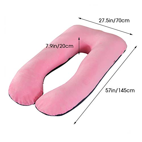 Mingfuxin, cuscini premaman a forma di U per allattamento e gravidanza, con cerniera staccabile in cotone velluto di sostegno per donne incinte schiena, pancia (145 x 70 cm, velluto | grigio+rosa)