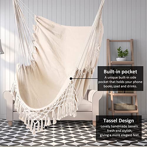 Mingfuxin Sedia A Dondolo Sospesa, Sedia Amaca Altalena con 2 cuscini di seduta Barra di supporto in metallo staccabile Sedile sospeso per Interno Esterno Casa Camera da Letto Giardino