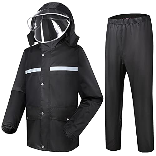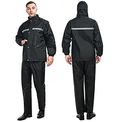 MINGJ Uomo Tuta Impermeabile Giacca Pantaloni, Antipioggia Moto 100% Impermeabile Traspirante Tuta Antipioggia Riflettente, Nero(XXL,Black)