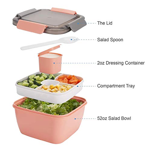 MANTENERE GLI ALIMENTI SEPARATI -Lunch Box: Doppi strati con un divisore rimovibile che può contenere varie insalate e tenere separate le insalate e gli alimenti, gli alimenti non si mescolano insieme per causare disordine ed è ottimo per il controllo delle porzioni.