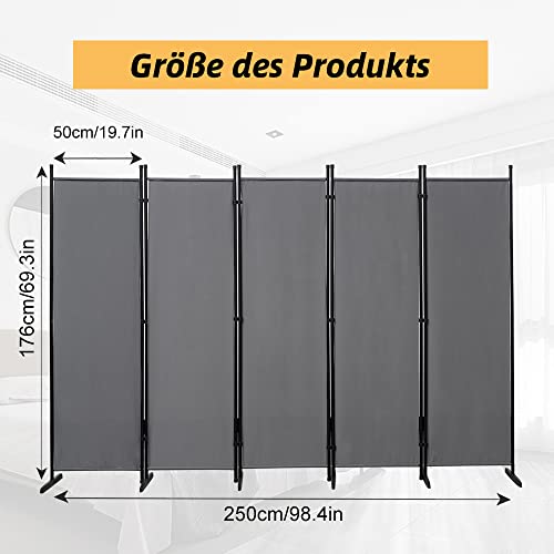 Mingone Paravent - Divisorio divisorio per interni, balconi, privacy, parete spagnola, in tessuto, 5 pezzi, per uffici, 250 x 180 cm, colore: antracite