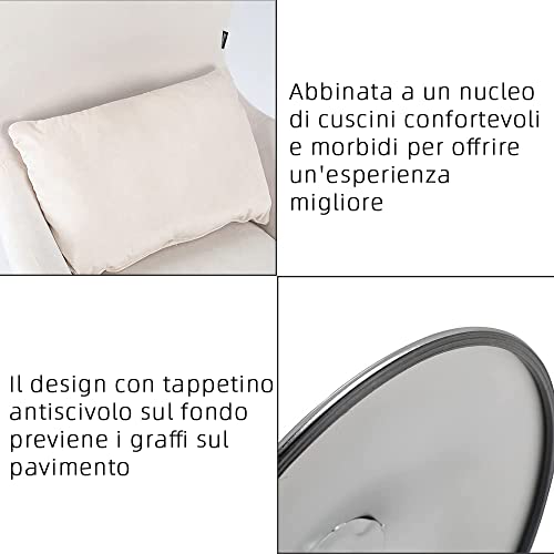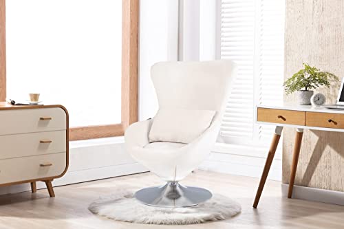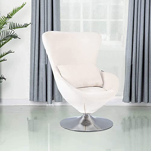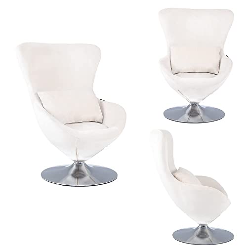 Mingone Poltrona Singola Lounge Divano Girevole Moderno Poltrona da Leggere Poltrona Ovale Velluto di Uovo per Camera Letto Soggiorno Cocktail Party, Bianco