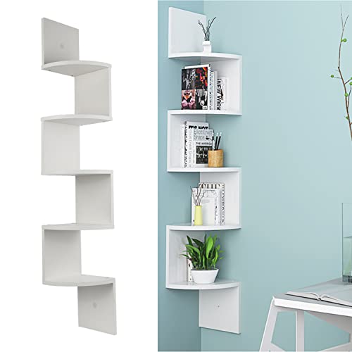 MINGYI Libreria Scaffale Angolare Mensola a 5 Ripiani, Mensole Angolare Legno, Scaffale Angolare a Parete Moderno, Libreria Angolare da Parete, per Camera da Letto Soggiorno, 20×20×123 cm (Bianco)