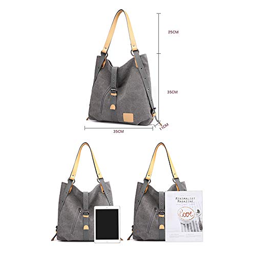 MINGZE Borsa Donna, Zainetto Donna Zaino Alla Moda Con Tracolla Casuale Multifunzionale Borse a Spalla di Tela Grande per Viaggio Shopping Lavoro (grigio)