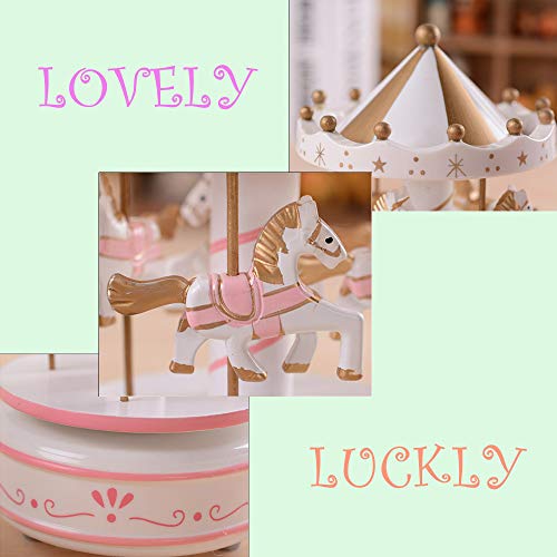 MINGZE giostra di Legno Carillon, Scatola Musicale Music Box Vintage Exquisite Crafts San Valentino Compleanno Regali di Natale Decorazioni per la casa, Multicolore (Star-Pink)