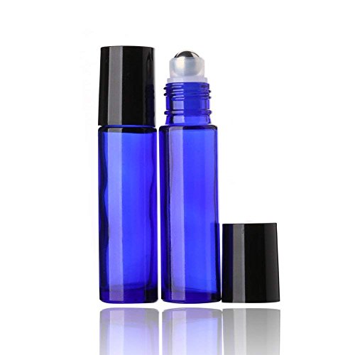 MINGZE 8 pezzi di bottiglia di olio essenziale, bottiglie di vetro blu da 10 ml con sfere di metallo in acciaio inossidabile, olio essenziale da roll-on, profumo di aromaterapia, a sfera per liquidi